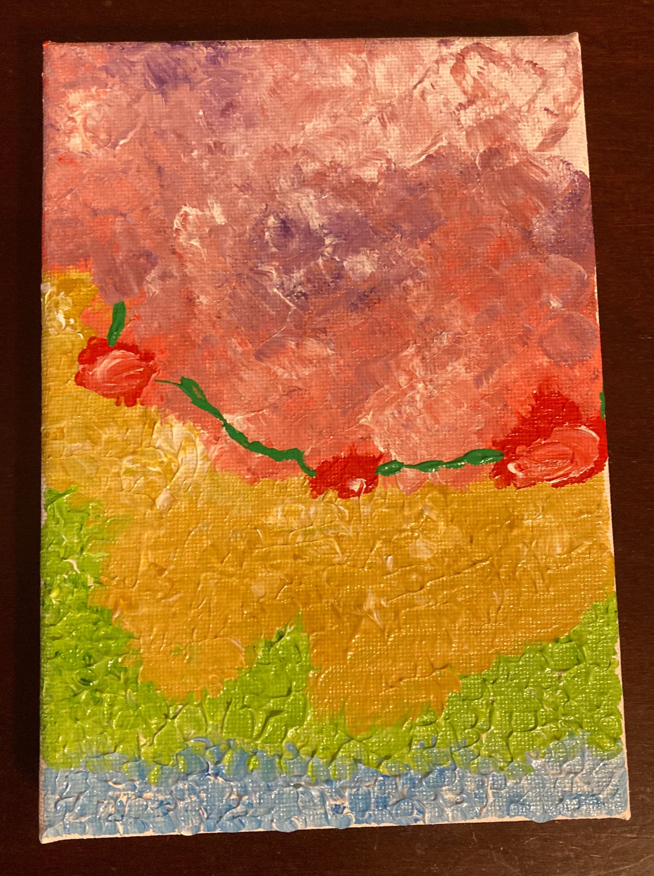 A woman wearing a flower crown looks at the blue depths beneath her.